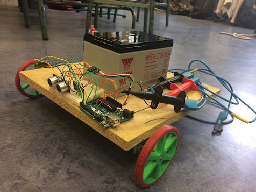 Robot distributeur de journaux. Phase de test de la fonction « détection d’obstacles ».